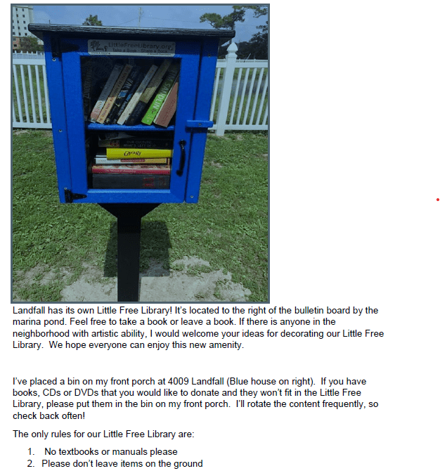 If you have a Facebook account and would like to join the Landfall Homeowners Association site please request to join